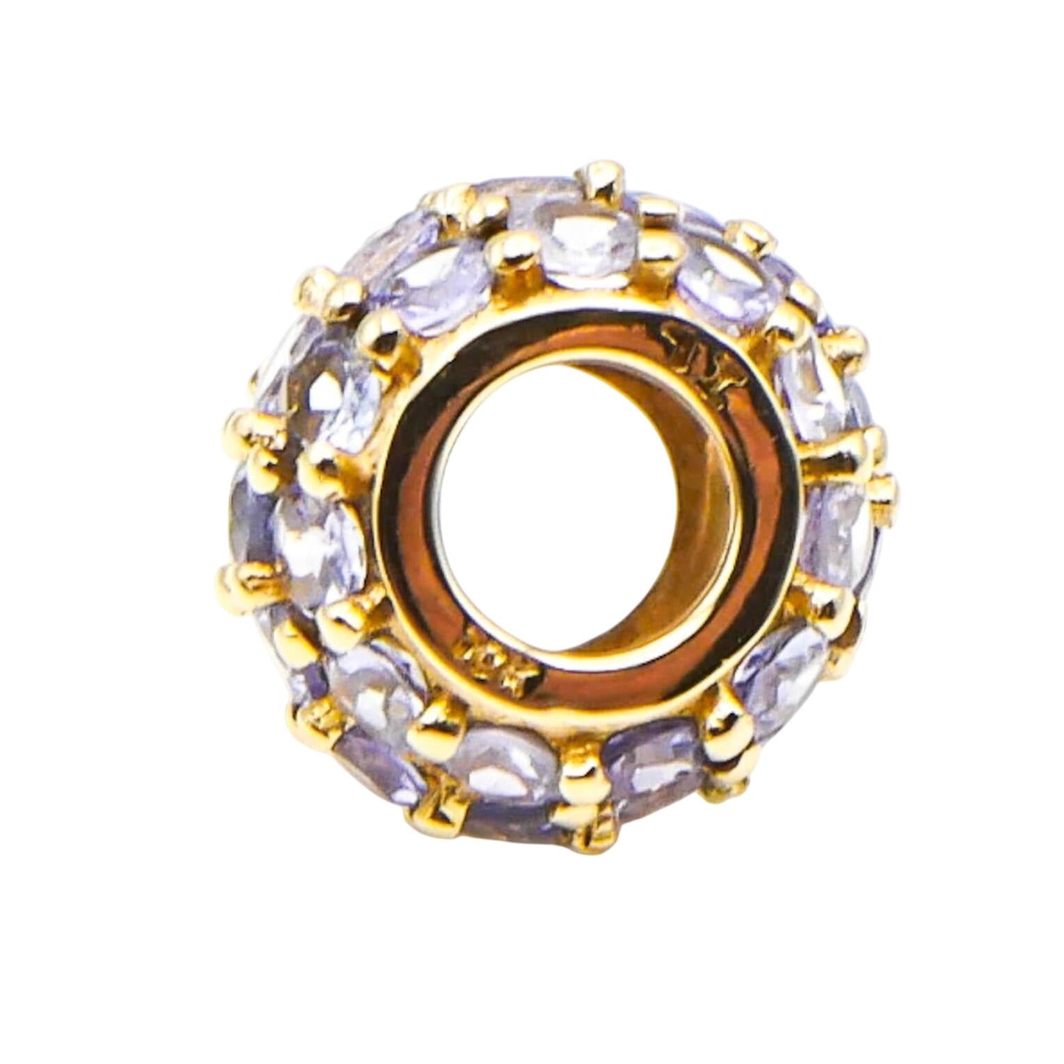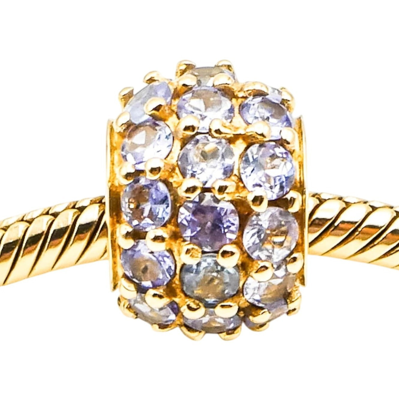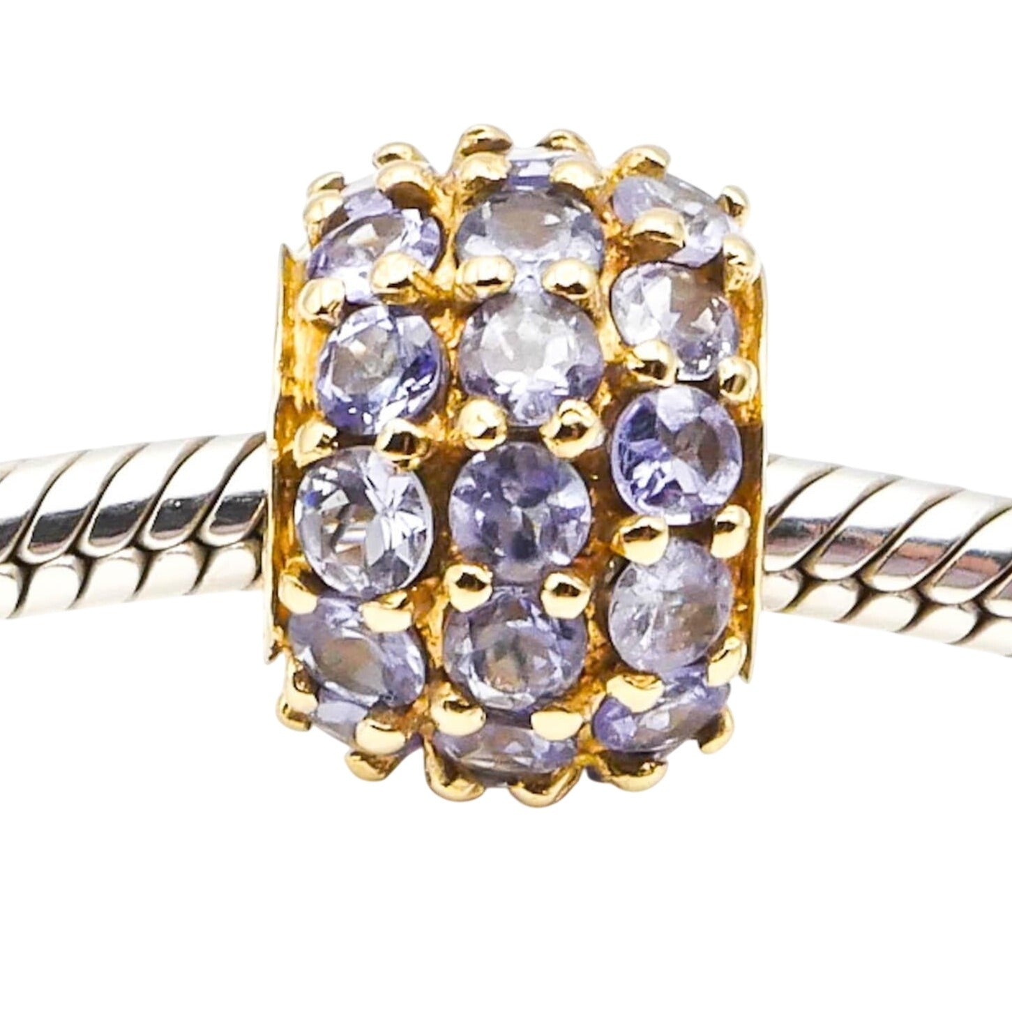10k Yellow Gold Iolite Pendant Slide Charm Marked JL. This gorgeous slide pendant is made with 10K Yellow Gold and is covered in 32 round, brilliant cut blue violet Iolite. A beautiful pendant that will sparkle from every angle. Can also be worn as a charm and fits all major brands.