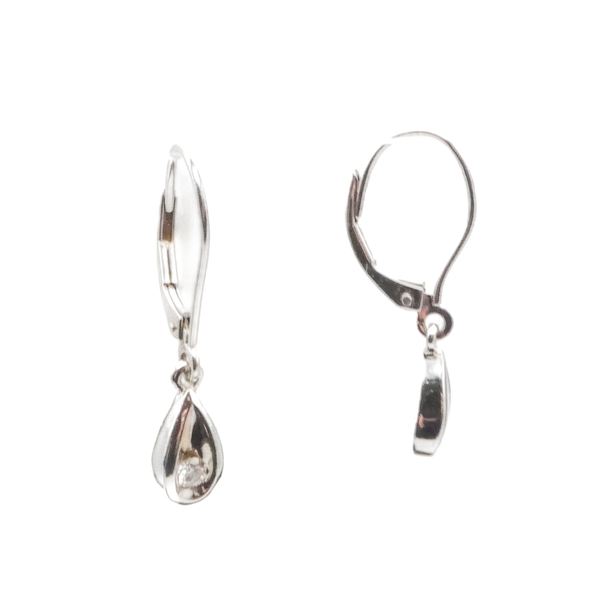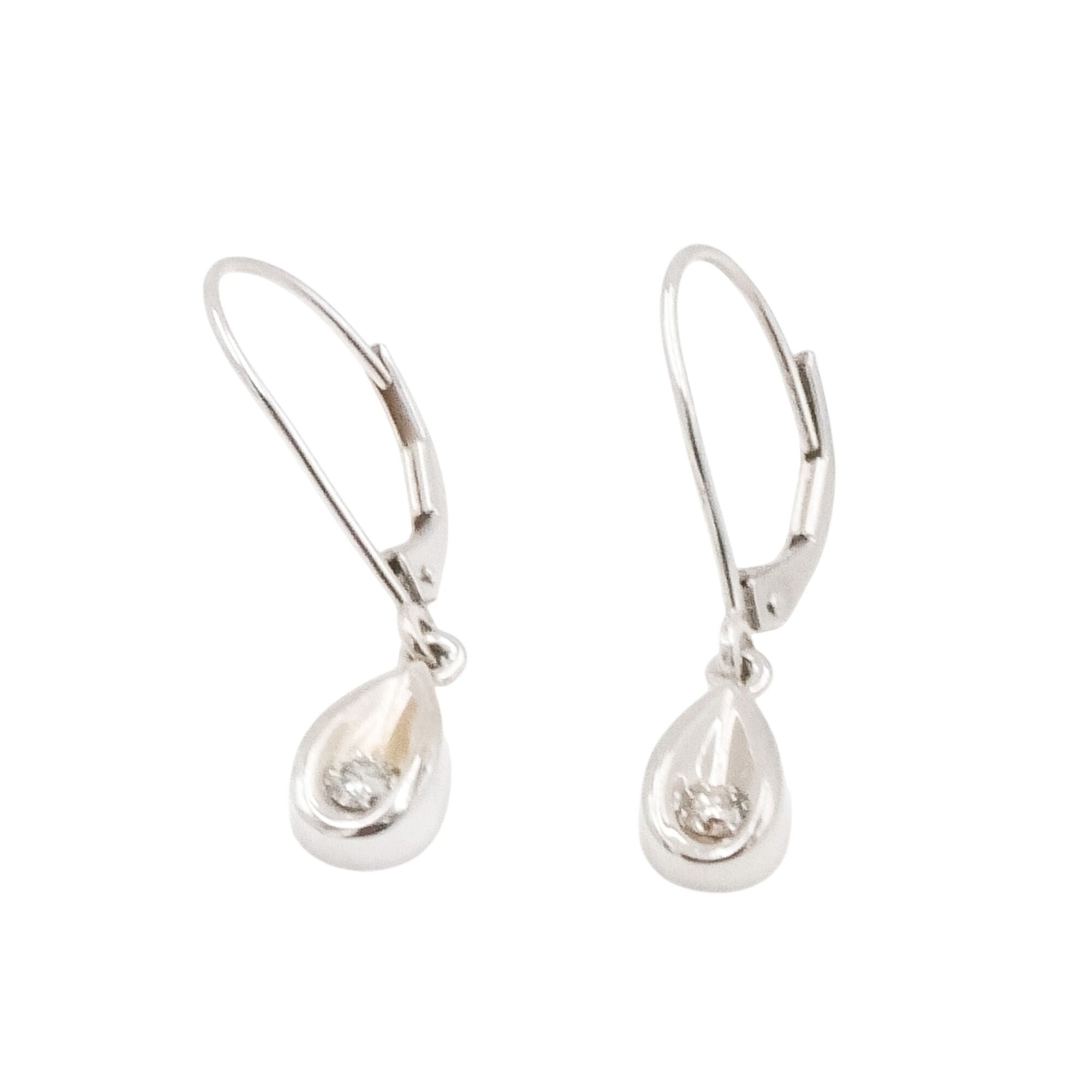 14K White Gold Diamond Teardrop Dangle Earrings 1/8 CT 1.125”
