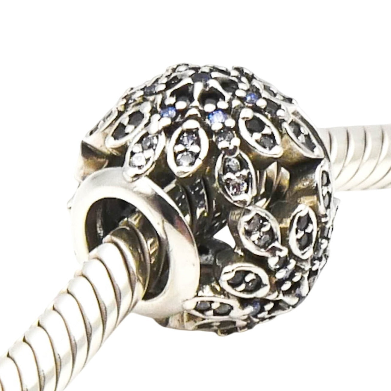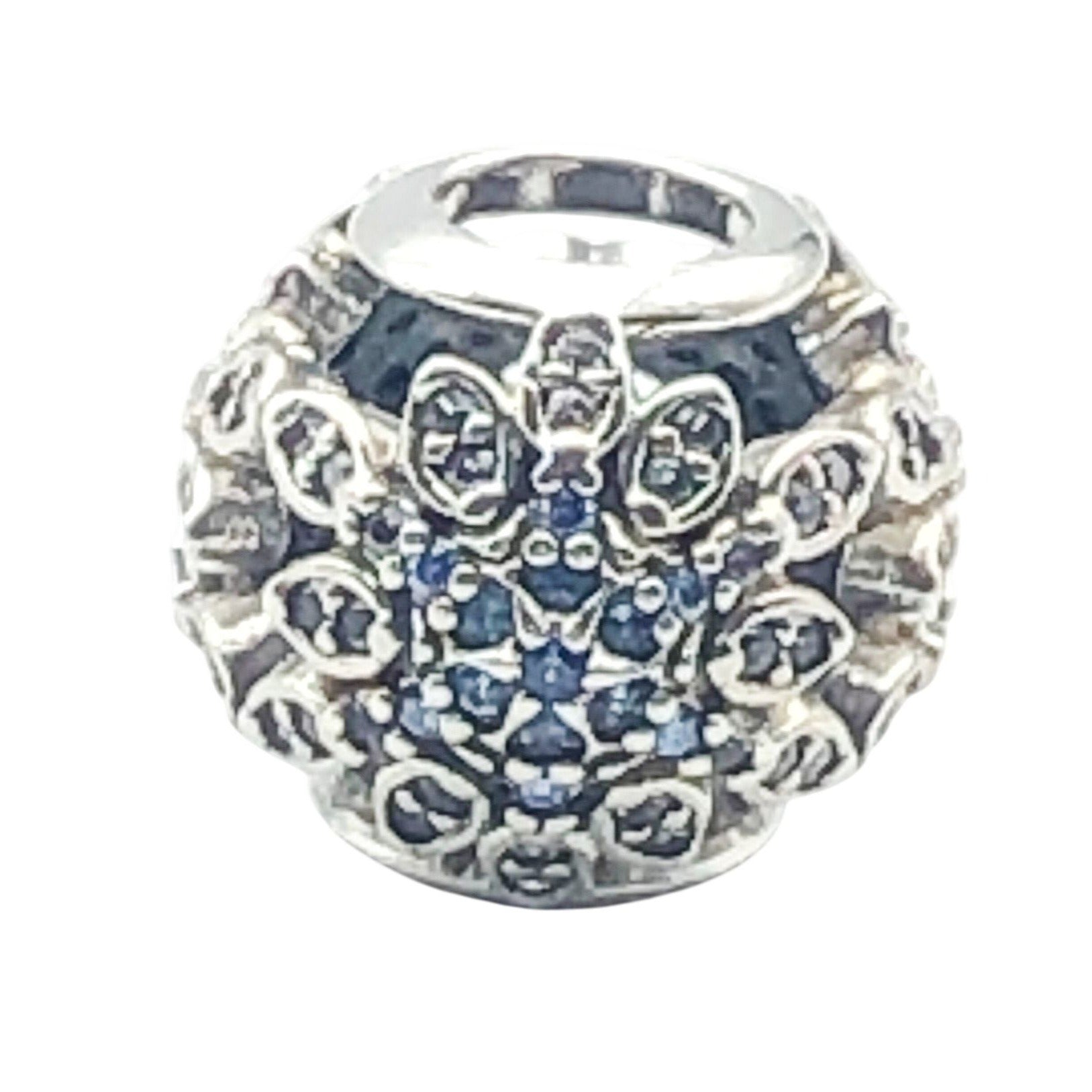 Authentic PANDORA Crystalized Snowflakes 925 ALE Sterling Silver Charm With Blue Crystals and Clear Zirconia 791760NBLMX - Retired. Gorgeous and beautifully crafted charm that sparkles in shades of blue cubic zirconia crystals which form an elegant snowflake.