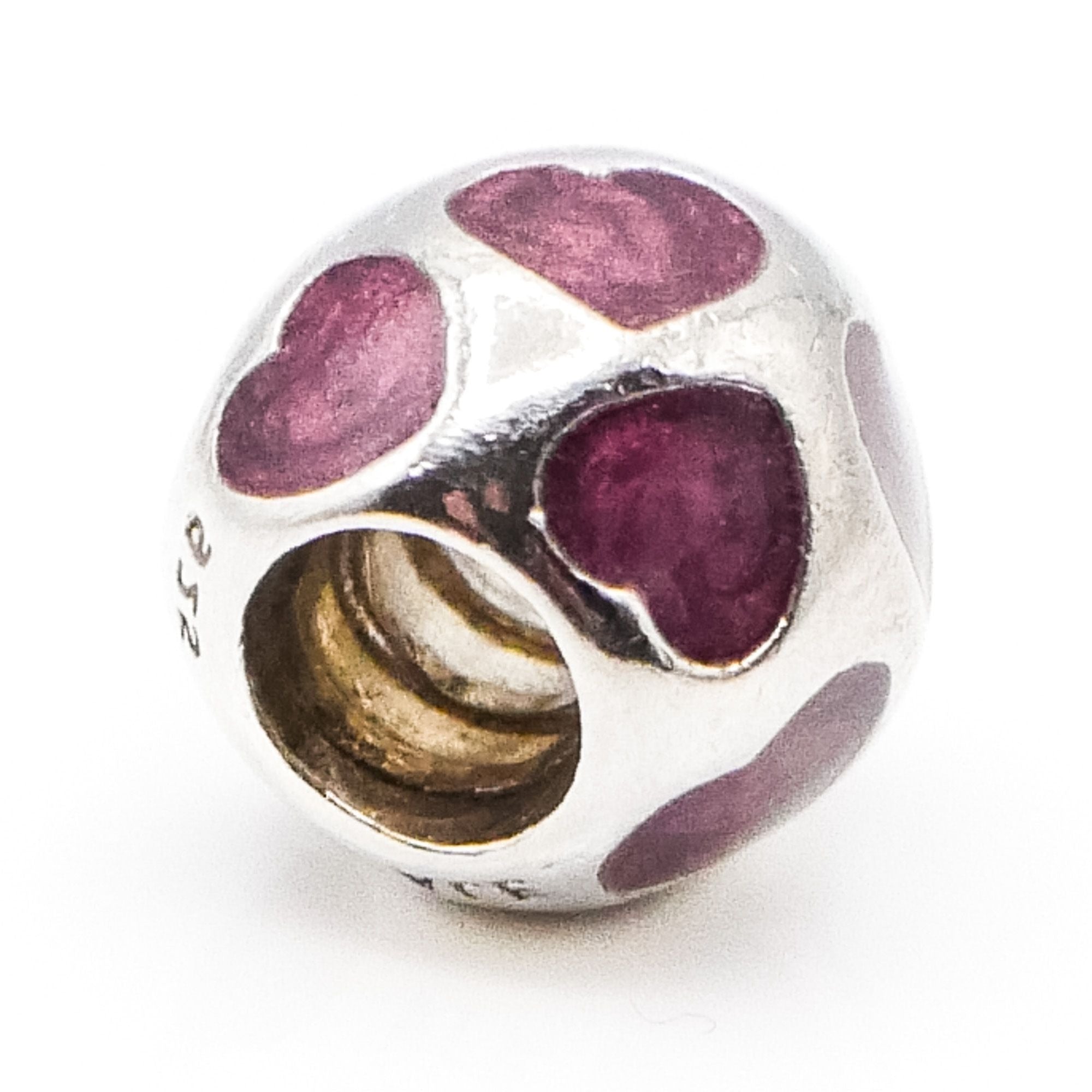 This Authentic Pandora “Love You” charm is crafted from 925 ALE sterling silver and accented with rich purple enamel hearts encircling the bead. The heart motif adds depth and dimension, creating a romantic and timeless charm that pairs beautifully with both themed and everyday Pandora bracelets.